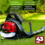 - Alta Potência e Desempenho: Motor de 43cc para eficiência e alta performance.